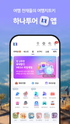 하나투어 앱은 특가 찬스부터 추천 일정까지, 여행 천재들의 완벽한 치트키입니다. 하나팩 2.0과 항공, 호텔, 투어 특가로 전 세계 자유여행을 간편하게 예약하고 나만의 특별한 경험을 만드세요.