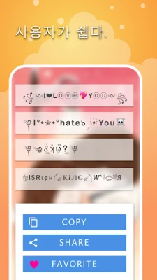 "멋진 기호 및 문자" 앱으로 게임과 SNS에서 돋보이는 개성 넘치는 닉네임을 만드세요. 수많은 독특하고 특별한 문자와 기호, 이모티콘으로 나만의 스타일을 표현하고 친구들에게 깊은 인상을 남기세요. 쉽고 빠르게 멋진 이름을 생성하고 복사하여 사용해보세요.