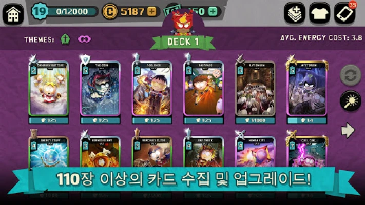 "South Park: Phone DestroyerTM"에서는 상식을 뛰어넘는 캐릭터들이 등장합니다. 카우보이, 마법사, 사이보그는 물론, 달의 스탠, 사이보그 케니, 유대닌자 카일, 대마법사 카트먼 등 완전히 새롭게 재해석된 영웅들을 만나보세요. 110종이 넘는 개성 강한 카드들을 수집하고 업그레이드하여, 각 캐릭터의 잠재력을 최대로 끌어내세요. 치열한 실시간 PvP 대결에서 전략적인 덱 구성과 기발한 전술로 상대를 압도하고 승리를 쟁취할 수 있습니다. "South Park Digital Studios"와 함께 만들어진 기상천외한 싱글 플레이 스토리는 당신을 사우스 파크의 깊은 세계로 이끌 것입니다.