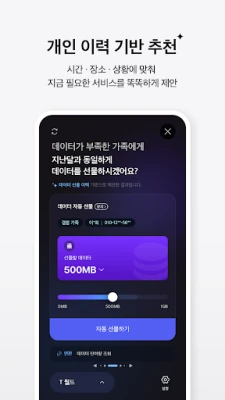 T world는 개인 맞춤형 기능을 통해 고객님의 스마트한 생활을 지원합니다. 'MY' 메뉴에서는 실시간 잔여 데이터, 음성, 문자량부터 청구 요금, 가입 상품 정보까지 모든 것을 한눈에 파악할 수 있습니다. '나의 데이터/통화'에서는 데이터 선물, 리필 쿠폰 사용, 이용 내역 조회 등 세밀한 관리가 가능하며, '나의 요금'에서는 요금 안내서 확인과 납부 방식 변경, 휴대폰 결제 내역 조회까지 편리하게 처리할 수 있습니다. 또한, T 멤버십 바코드를 즉시 사용하고 T 우주 구독 상품을 관리하며, 고객님의 사용 이력을 기반으로 시간과 상황에 맞는 개인화된 추천 서비스를 통해 맞춤형 혜택을 제안받아보세요.