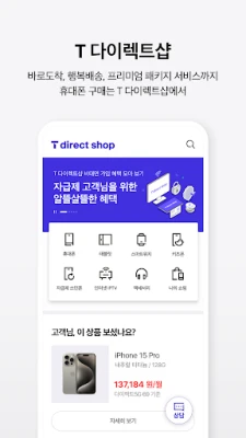 최신 기기 구매나 통신 상품 변경도 T world에서 간편하게 해결됩니다. 'T 다이렉트샵'에서 휴대폰, 태블릿, 스마트워치부터 B tv와 다양한 액세서리까지 손쉽게 둘러보고 구매할 수 있습니다. 현재 이용 중인 요금제와 부가서비스, 결합 상품 정보는 물론, SK텔레콤이 제공하는 폭넓은 상품들을 상세하게 확인하고 변경할 수 있습니다. 급한 용무가 있거나 궁금한 점이 있다면, 가까운 SK텔레콤 지점이나 AS 센터를 찾고 방문 예약을 할 수 있는 '고객 지원' 메뉴를 이용해보세요. 신분증 확인부터 국민비서 정보 관리까지 간편하게 처리하는 'PASS지갑' 기능은 T world의 또 다른 편리함을 더합니다. 언제 어디서든 SK텔레콤 고객의 모든 궁금증과 필요를 해결하는 만능 솔루션, 바로 T world입니다.