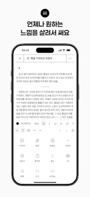Typie와 함께라면 생각의 흐름을 방해받지 않고 오직 글쓰기에만 집중할 수 있습니다. 자간, 행간, 들여쓰기 같은 세밀한 서식 조절부터 이미지, 링크, 표 등 다채로운 요소를 활용한 풍부한 글 구성까지, 당신의 창작을 위한 완벽한 공간을 제공합니다. 몰입을 돕는 타자기 모드와 특정 줄 강조 기능은 시선을 분산 없이 붙잡아주며, 다크 모드로 눈의 피로를 덜어 편안하게 글을 쓸 수 있습니다. 자주 사용하는 문장 부호는 자동으로 변환되어 불필요한 번거로움을 줄이고, 외부 키보드 연결 시에도 최적화된 편집 경험을 선사합니다.
